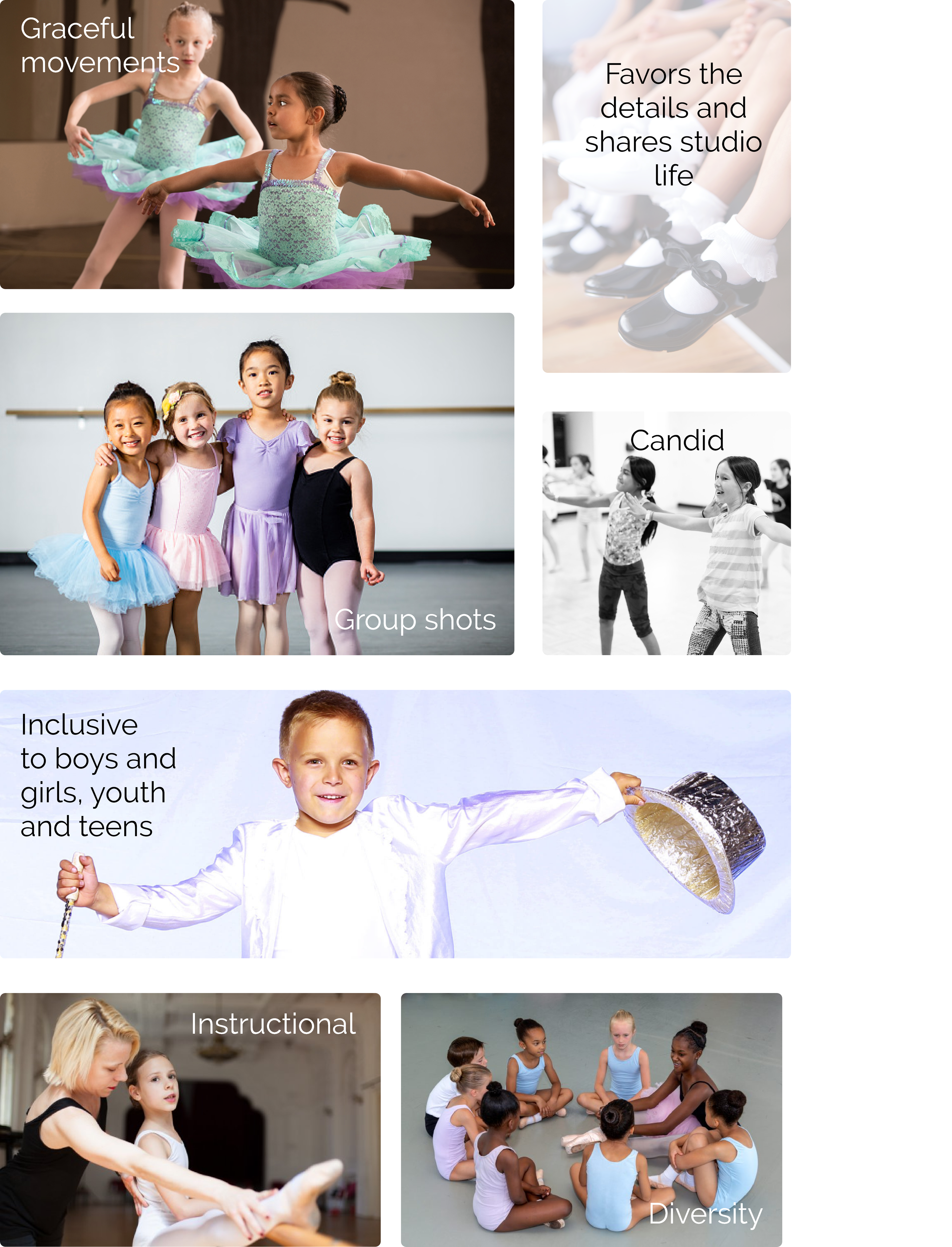 Images are of high quality, show different angles, captures boy and girls of different ages as well as group photos, exhibit a variety of ethnicities and convey a mixture of authentic photography and posed photos.